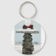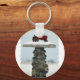 Roter Traktor im Schneeknopf Schlüsselanhänger.