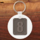 Ein cooles Design der Nummer acht. Dieses Design ist ein gepresstes Metall acht Design. Die Zahl acht ist Set in einem Metallrechteck, das in jeder Ecke einen Niet hat. Sehr wirksam. Dieses Metall-8-Design sieht auf diesem Schlüsselanhänger großartig aus. Perfekt für sich selbst oder als Geschenk