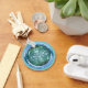 Eine hübsche, verzierte Glasnähtaste in türkisfarbenen, blauen und lila Farben. Für jeden, der Knöpfe oder Nähte sammelt.