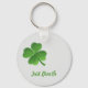 Ein hellgrünes, vierblättriges Kleeblatt oder ein glückliches Kleeblatt. Die vier Blätter des Kleeblatts repräsentieren Glauben, Hoffnung, Liebe und Glück. In der Farbtheorie repräsentiert Grün Frühling, Anfänge, Pflege und Wachstum, gute Gesundheit und Überfluss. Es gibt einen personalisierbaren Textbereich, der jetzt liest