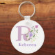Das Design bietet Monogram & Name mit Blume beiderseits in einem pastellfarbenen Aquarell-Stil. Beispielname ist Rebecca. Geändert für jeden mit einem Namen, der mit R beginnt.