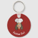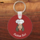 Koch Kopf mit Hut und rotem Halsbein. Benutzerdefinierte Hintergrundfarbe. Benutzerdefinierter Text auf beiden Seiten.