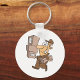 Ein Mann, der Pakete liefert. Er trägt mehrere Pakete auf einmal. Dieses Design wirkt auf diesem Schlüsselanhänger wirklich effektiv