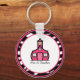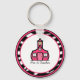 Ein Schlüsselanhänger mit dem Logo des Pink Schoolhouse in einem Zebra-Rahmen mit rosafarbenem Schnitt. Im Text steht "Pre-K Teacher".
