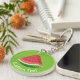 Reife rote Wassermelonen-Slice-Symbol. Benutzerdefinierte Hintergrundfarbe. Benutzerdefinierter Text auf beiden Seiten.