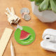 Reife rote Wassermelonen-Slice-Symbol. Benutzerdefinierte Hintergrundfarbe. Benutzerdefinierter Text auf beiden Seiten.