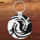 Button-Schlüsselanhänger mit Yin Yang zwei Dragons Schwarzweiß-Grafik.