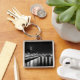 Ein Schlüsselbund mit einer Fotografie der schwarzen und weißen Eiffel-Umdrehung in