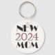 Schlüsselkette mit rosa und schwarzem Text liest Junge Mutter 2024.
