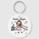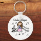 Schlüsselkette mit Strichmännchen brünett gehütetes Mädchen Violinspieler Design.