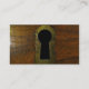 Detail des Schlüssellochs in einer Holztür mit dunklen hölzernen Körnern, kreative hölzerne Kornmuster
