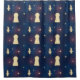 Dieser Duschvorhang zeigt ein leuchtendes Muster aus Messern, Schlüssellöchern und Sternen vor einem tiefen, dunkelblauen Hintergrund mit subtilen roten und blauen Lichtausbrüchen.
