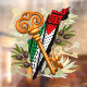 Der Schlüssel des Rückkehrrechts, auch als "Symbol des Rückkehrrechts" bekannt, ist ein wichtiges Symbol für das palästinensische Volk. Sie repräsentiert den Wunsch palästinensischer Flüchtlinge, in ihre heimat zurückzukehren, zu deren verlass sie von den israelischen Kolonisatoren während der Nakba-Katastrophe von 1948 gezwungen wurden, oder "Katastrophe". Hier ist der Schlüssel, vereint mit der Original Palästinensischen Karte und den Flag-Farben, und der Zweig Olivenbaum, ein palästinensisches Symbol für Stärke und Widerstandskraft. Original Vektor Nahtlose Wiederholung Textile Muster Urheberrecht BluedarkArt The ChameleonArt.