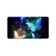 Fantastisch, leuchtend, blau und gelb, Nachtschmetterling auf dunklem Hintergrund.