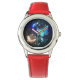 Kinderuhr aus Edelstahl mit rotem Lederarmband