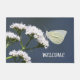 Auf dieser Türmatte befindet sich das hübsche Foto eines weißen Schmetterlings, der auf weißen Blume ruht. Mit der Begrüßung ist diese Türmatte eine gute Möglichkeit, Besucher zu begrüßen. Stablie Latexrückseite mit Anti-Rutschhaftung. Diese Matte widersteht dem Abblasen, Schimmeln und Mehltau und ist 24"w x 36"l, in den USA dekoriert.