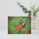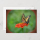 Auf dieser Postkarte befindet sich ein Schmetterling, der auf einem orangefarbenen Zinnia ruht.