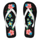 © Sunny Mars Designs. Butterfly on Blume Custom Blue Flip Flops - Hübsche Kinderlieder mit einem grafischen Vektor Illustration Blumendesign eines abstrakten Schmetterlings sitzend auf einem rosa Hibiskus tropische Blume mit anderen blauen und gelben Blüten wie Blume oben. Die schwarze Hintergrundfarbe kann geändert werden.
