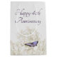 Lila Schmetterling auf weißem Hydrangea auf weich weißem, texturiertem Hintergrund zum 40. Jubiläum. Text kann für jedes Jahr Jubiläum geändert werden.