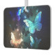 Fantastisch, leuchtend, blau und gelb, Nachtschmetterling auf dunklem Hintergrund.