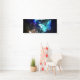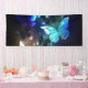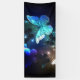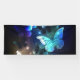 Fantastisch, leuchtend, blau und gelb, Nachtschmetterling auf dunklem Hintergrund.