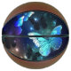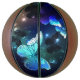Fantastisch, leuchtend, blau und gelb, Nachtschmetterling auf dunklem Hintergrund.