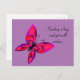 Hübscher Schmetterling auf lila Hintergrund, ist auf diesem gut Postkarte. An der Vorderseite der Postkarte steht: "Umarmung und gute Wünsche bekommen", auf der Rückseite der Postkarte steht: "Hoffe, dass du bald wieder hoch fliegen kannst!". Ein guter Weg, um lassen, Sie senden gute Wünsche.