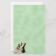 Gelber Tiger-Frackschmetterling auf einem rosa Blumen-Foto auf Grün färbte stationäres Papier