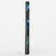 Fantastisch, leuchtend, blau und gelb, Nachtschmetterling auf dunklem Hintergrund.