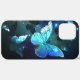 Fantastisch, leuchtend, blau und gelb, Nachtschmetterling auf dunklem Hintergrund.