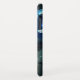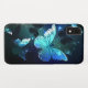 Fantastisch, leuchtend, blau und gelb, Nachtschmetterling auf dunklem Hintergrund.