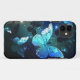 Fantastisch, leuchtend, blau und gelb, Nachtschmetterling auf dunklem Hintergrund.