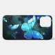 Fantastisch, leuchtend, blau und gelb, Nachtschmetterling auf dunklem Hintergrund.