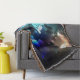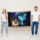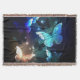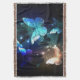Fantastisch, leuchtend, blau und gelb, Nachtschmetterling auf dunklem Hintergrund.