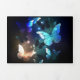 Fantastisch, leuchtend, blau und gelb, Nachtschmetterling auf dunklem Hintergrund.