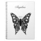 Schwarz-Weiß, künstlerischer, eleganter Schmetterling mit Blumenmotiv-Notizbuch mit individuelle Name.