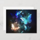 Fantastisch, leuchtend, blau und gelb, Nachtschmetterling auf dunklem Hintergrund.