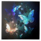 Fantastisch, leuchtend, blau und gelb, Nachtschmetterling auf dunklem Hintergrund.
