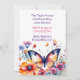 Ein hübscher Schmetterling, umgeben von rosa, blau, orange und violett blühenden Aquarellbildern, die die Einladungen des Mädchens zur Babydusche veranschaulichen.