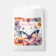Ein hübscher Schmetterling, umgeben von rosa, blau, orange und violett blühenden Aquarellbildern, die kleine Mädchen Dusche personalisierte Leckereien bevorzugen Taschen.