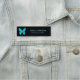 Schmetterling in Türkisblau auf schwarzem Hintergr Namensschild