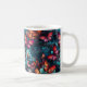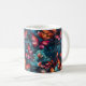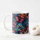 Diese Tasse hat ein Schmetterlingsmuster darauf.