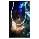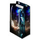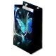Fantastisch, leuchtend, blau und gelb, Nachtschmetterling auf dunklem Hintergrund.