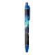 Fantastisch, leuchtend, blau und gelb, Nachtschmetterling auf dunklem Hintergrund.