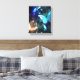 Fantastisch, leuchtend, blau und gelb, Nachtschmetterling auf dunklem Hintergrund.