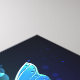Fantastisch, leuchtend, blau und gelb, Nachtschmetterling auf dunklem Hintergrund.