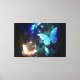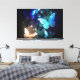 Fantastisch, leuchtend, blau und gelb, Nachtschmetterling auf dunklem Hintergrund.