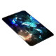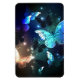 Fantastisch, leuchtend, blau und gelb, Nachtschmetterling auf dunklem Hintergrund.
