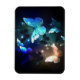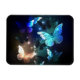 Fantastisch, leuchtend, blau und gelb, Nachtschmetterling auf dunklem Hintergrund.