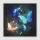 Fantastisch, leuchtend, blau und gelb, Nachtschmetterling auf dunklem Hintergrund.